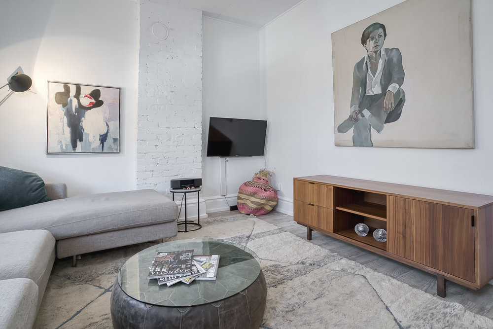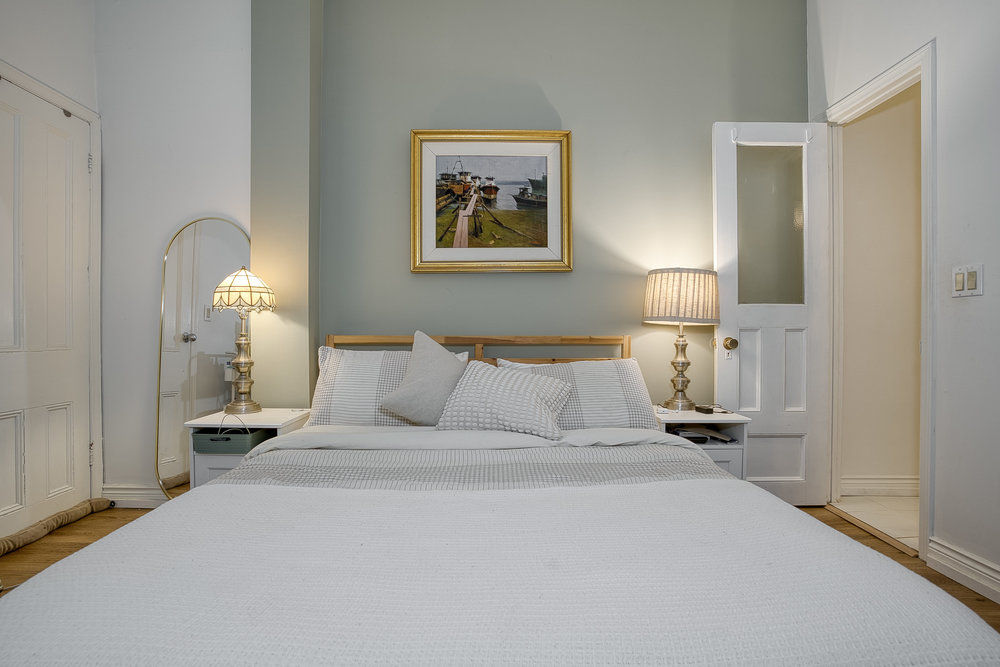 This stunningly renovated 1888 three-story duplex offers versatility, elegance, and an unbeatable location. Featuring two separate units, it includes a main-and-lower-level rental suite and a sophisticated owners unit spanning the second and third floors. A beautiful front garden and separate basement entrance adds extra charm and convenience. The Rental Suite (Main & Lower-Level) boasts soaring ceilings and an open-concept living and dining area. The kitchen is outfitted with modern appliances and countertops, and a mudroom is located at the rear entrance to the unit from the laneway. A spacious bedroom with a built-in closet is paired with a 3-piece ensuite featuring a tub and shower. The lower level offers a family/media room, 2-piece washroom, laundry room with washer and dryer for tenants, and a large storage/utility space with perfect blend of comfort and functionality. The Owners Suite (Second & Third Floors)is designed with premium finishes, the second floor features an ultra-modern kitchen with top-of-the-line appliances, a Hestan stove, and sleek countertops. The kitchen also has a well designed pantry, also a large closet for cleaning supplies and washer and dryer. The bright and airy living room is an art lover’s dream, with high ceilings and expansive windows.The third floor hosts a large primary bedroom with closets, guest bedroom, and stylish washroom. Step onto the private deck to enjoy breathtaking city views. Custom closets ensure ample storage, while stylish floors throughout add warmth and elegance. Prime Location & Parking: The home offers two-car parking via a wide, clean laneway off Hamilton St. Steps from Queen St. E., enjoy 24-hour streetcar access, trendy shops, and top dining in Riverside and Leslieville. Easy downtown and DVP access make this a must-see opportunity!